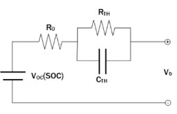 電芯等效電路包含 VOCV, R0, Rth, Cth