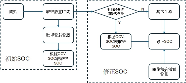 - 靜置30分鐘後,計算OCV電量,修正電量